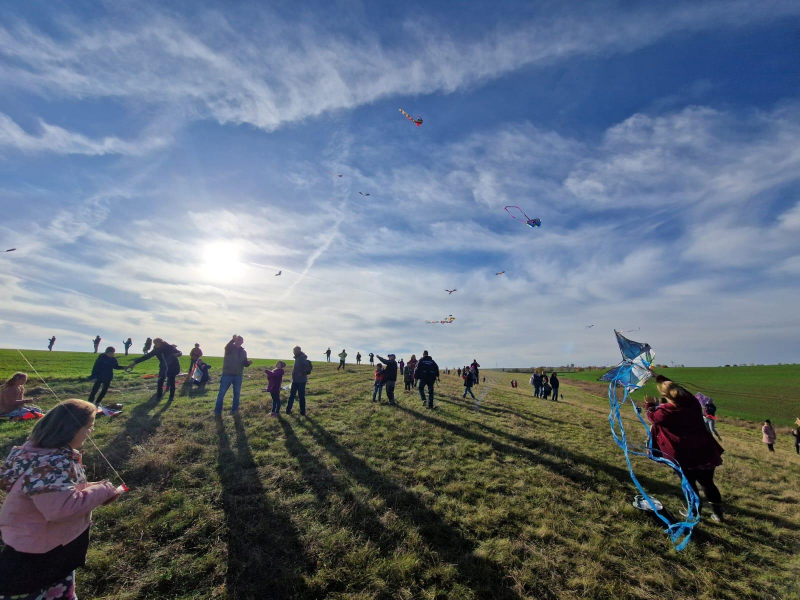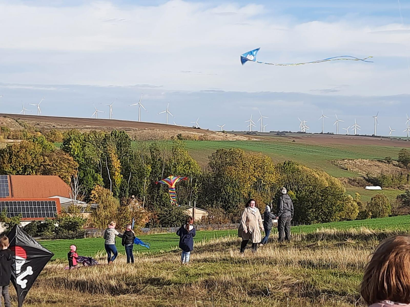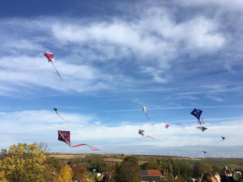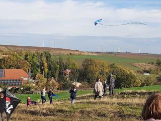 Am letzten Tag vor den Herbstferien ließen die Schülerinnen und Schüler der NaturGrundschule Heiligenthal ihre Drachen steigen. Mutti , Vati, Oma und Opa waren recht herzlich dazu eingeladen.