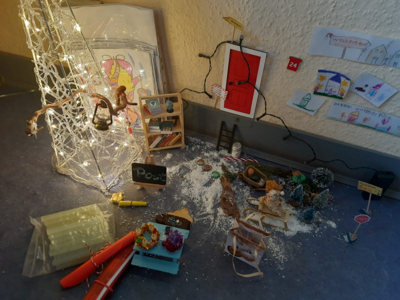 Der 01. Dezember kam und tatsächlich, plötzlich war er da! „Nils“ ist in die Schule eingezogen. Es folgte eine Vorstellung seiner Person und ein reger Briefaustausch kam ins Laufen. Jeden Tag folgten nun neue Aufgaben und Überraschungen, Rätsel und auch Wichtelstreiche. De Begeisterung unserer Kinder, ihre Freude und ihr Einfallsreichtum sind ungebrochen.