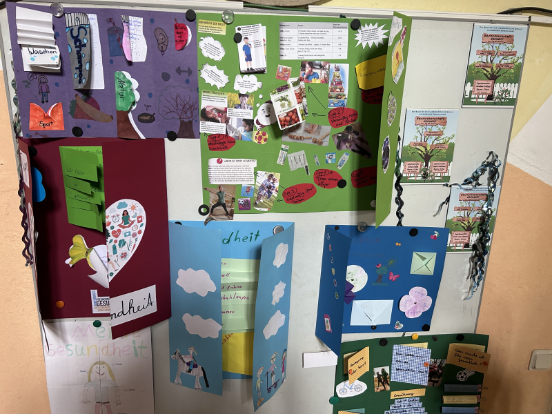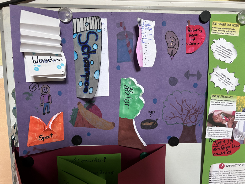 „Im Februar stellte die 4. Klasse ihre selbst erstellten Lapbooks zum Thema ‚Gesunderhaltung des Körpers‘ vor. Damit auch alle Schüler unserer Schule davon profitieren und die tollen Ergebnisse ansehen können, hängen die Lapbooks verteilt im Schulhaus aus.